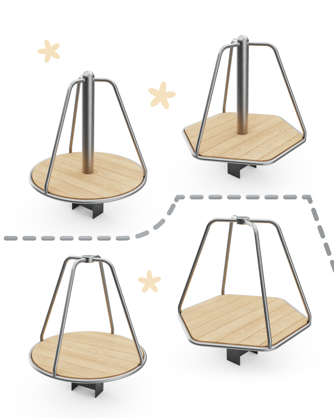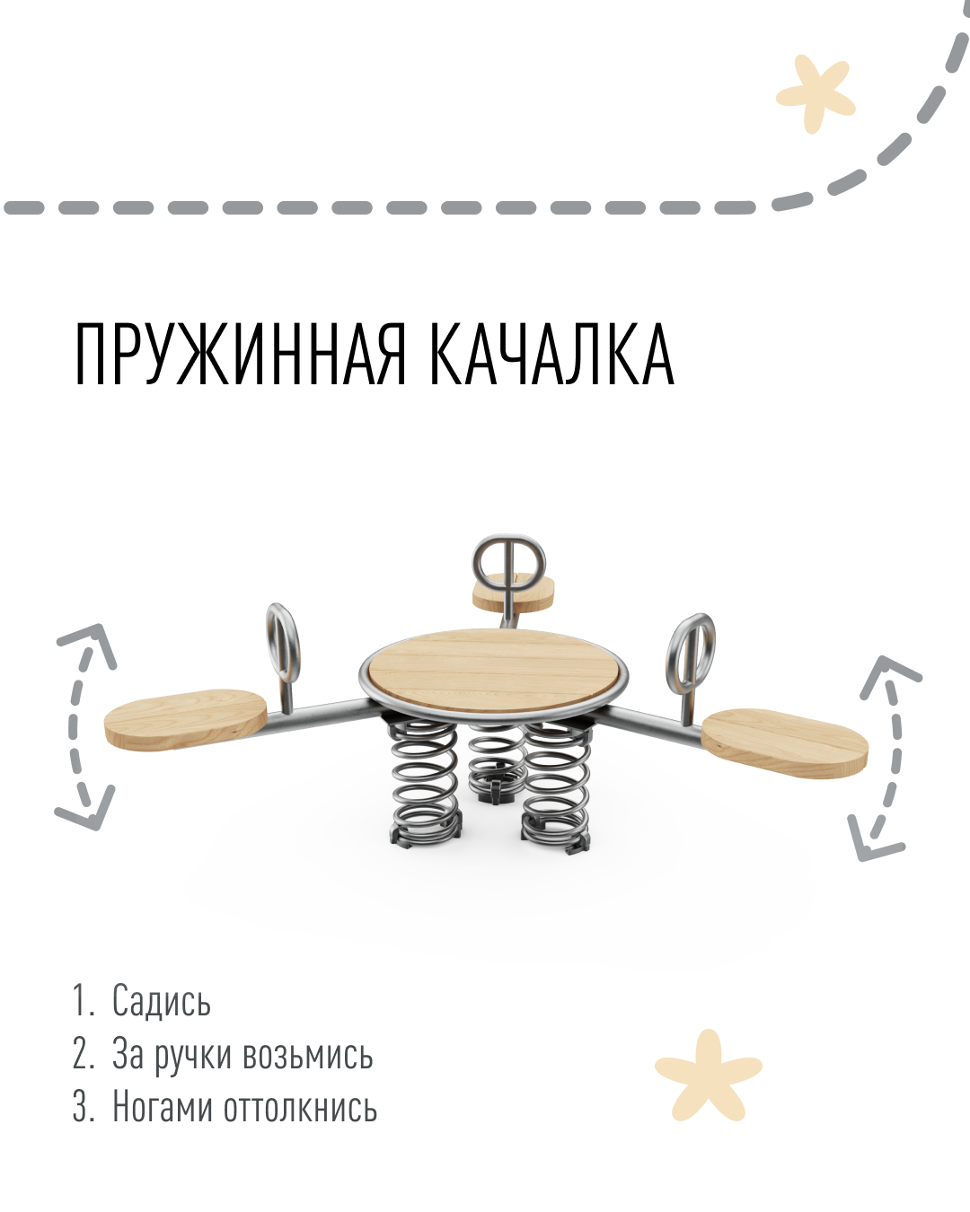 Мы расширили линейку оборудования для активной динамики - теперь ещё больше качалок и каруселей, которые вовлекают, развивают и радуют.