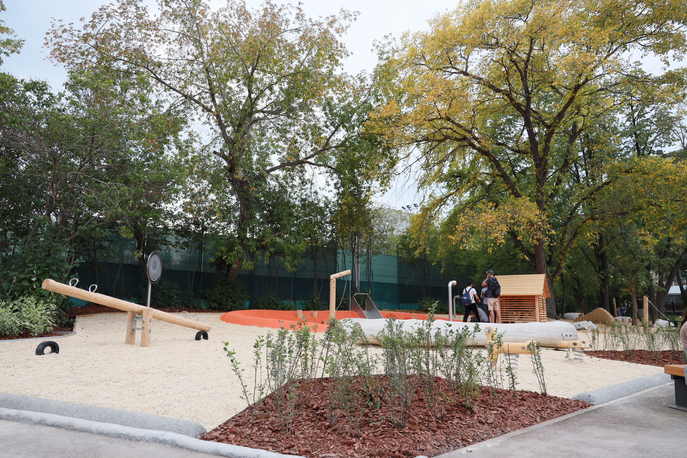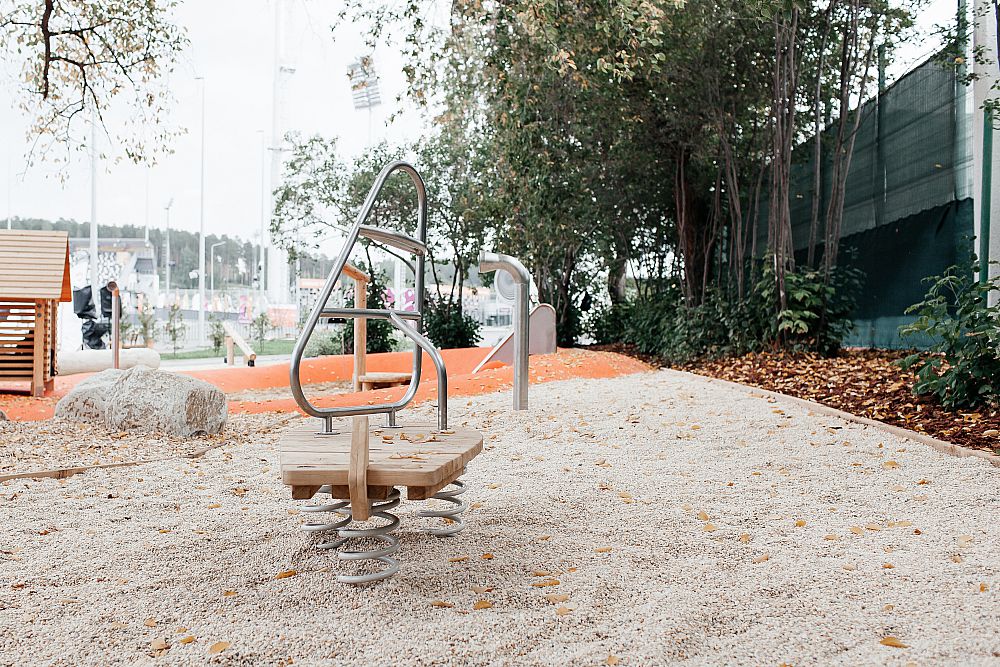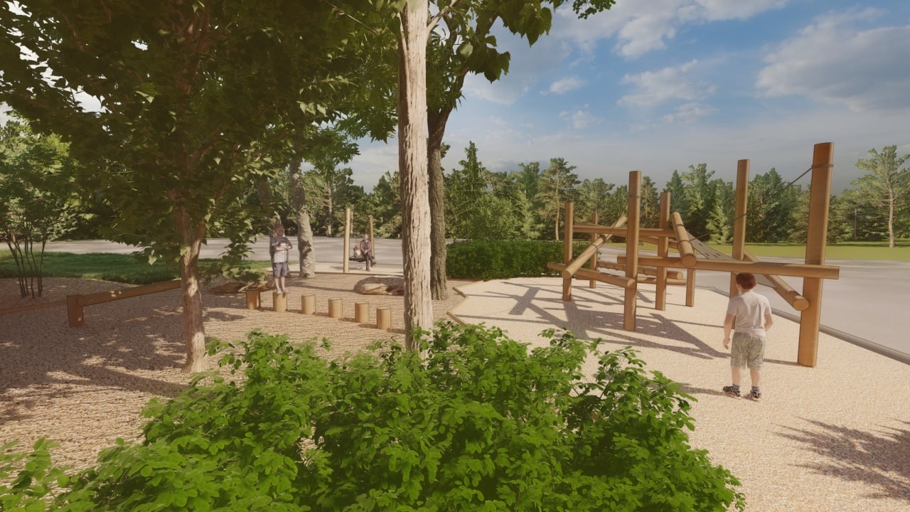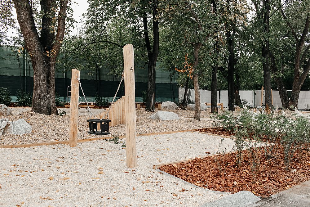 Данное игровое пространство — это наш самый быстрый проект. На создание концепции и реализацию площадки ушло меньше двух месяцев с момента первого визита на территорию будущего игрового пространства. Перед нами стояла задача вписать природную площадку в существующее пространство и рельеф, сохраняя существующие на площадке деревья и кустарники.