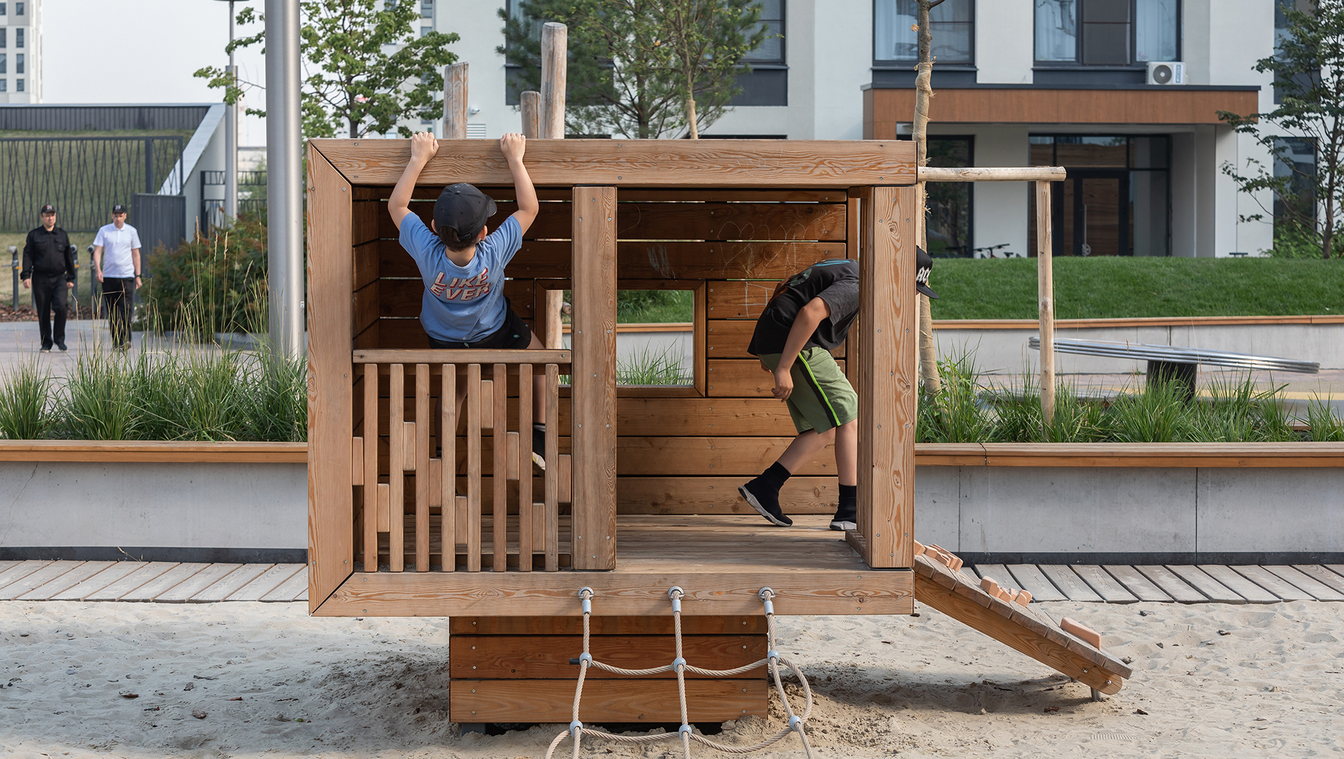 Риск — это прогнозируемое явление, которое возможно проанализировать и осмыслить. Риск должен присутствовать на игровой площадке в разумных пределах для освоения навыков и осознания собственных способностей. Наша задача — соблюсти баланс между контролируемым риском и требованиями безопасности детского игрового оборудования. Для этого мы разграничиваем оборудование для использования детьми младшего и старшего возраста с помощью конструктивных решений и минимизируем травмоопасность в соответствии со стандартами безопасности.
