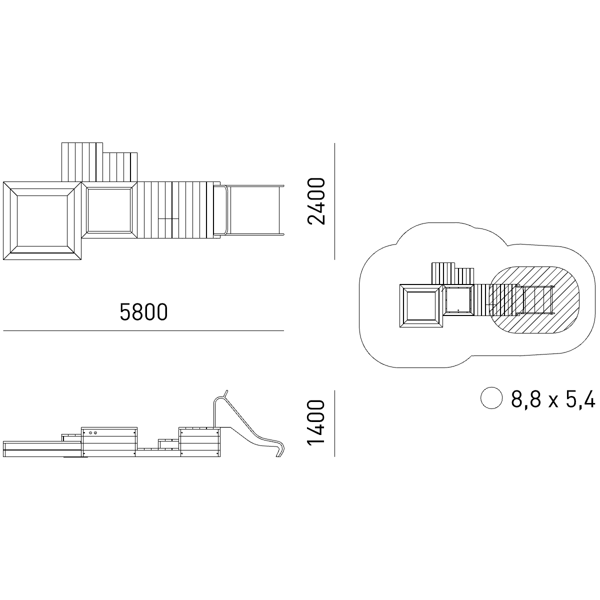 Габариты (М): 5,8 x 2,4 x 1,4