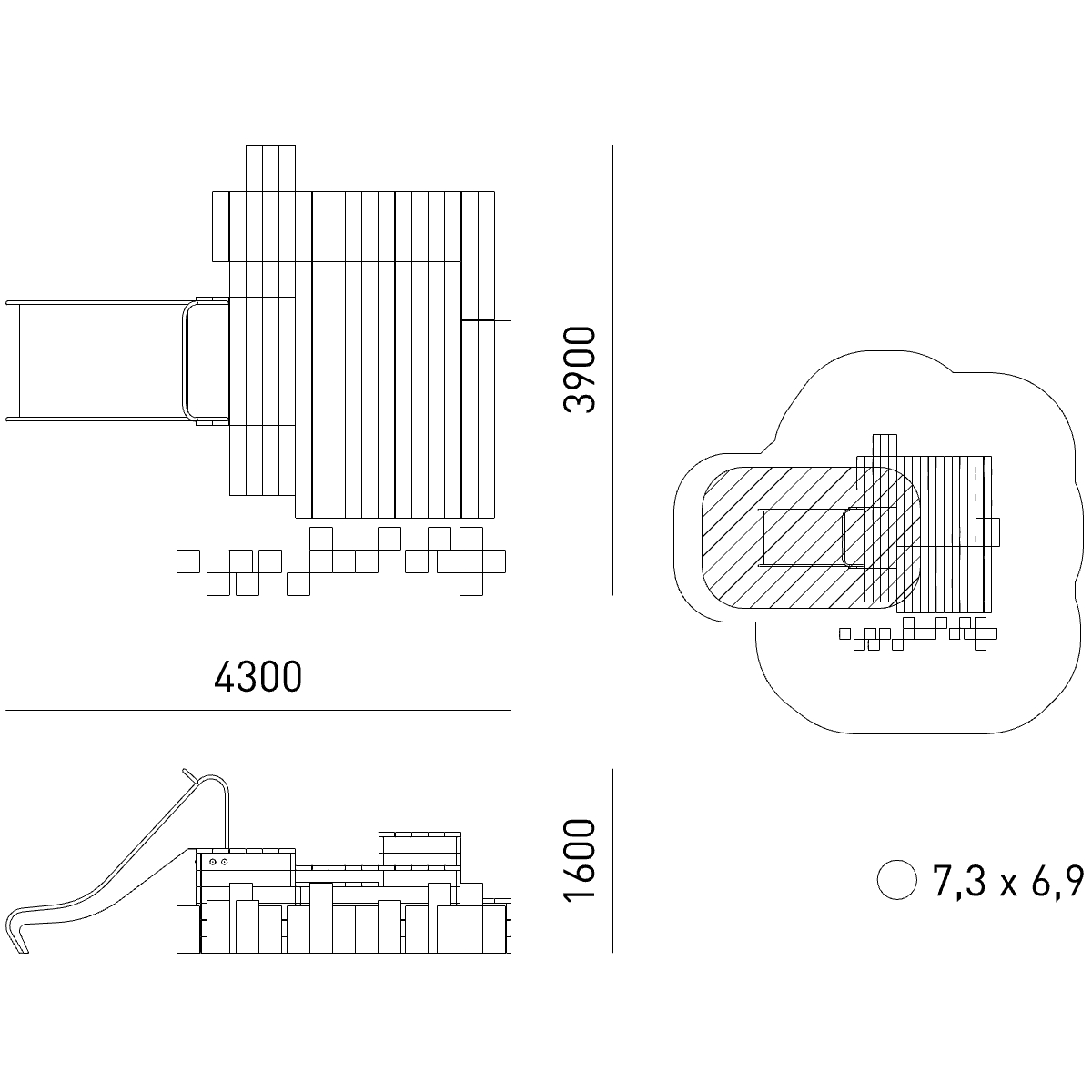 Габариты (М): 4,3 x 3,9 x 1,6
