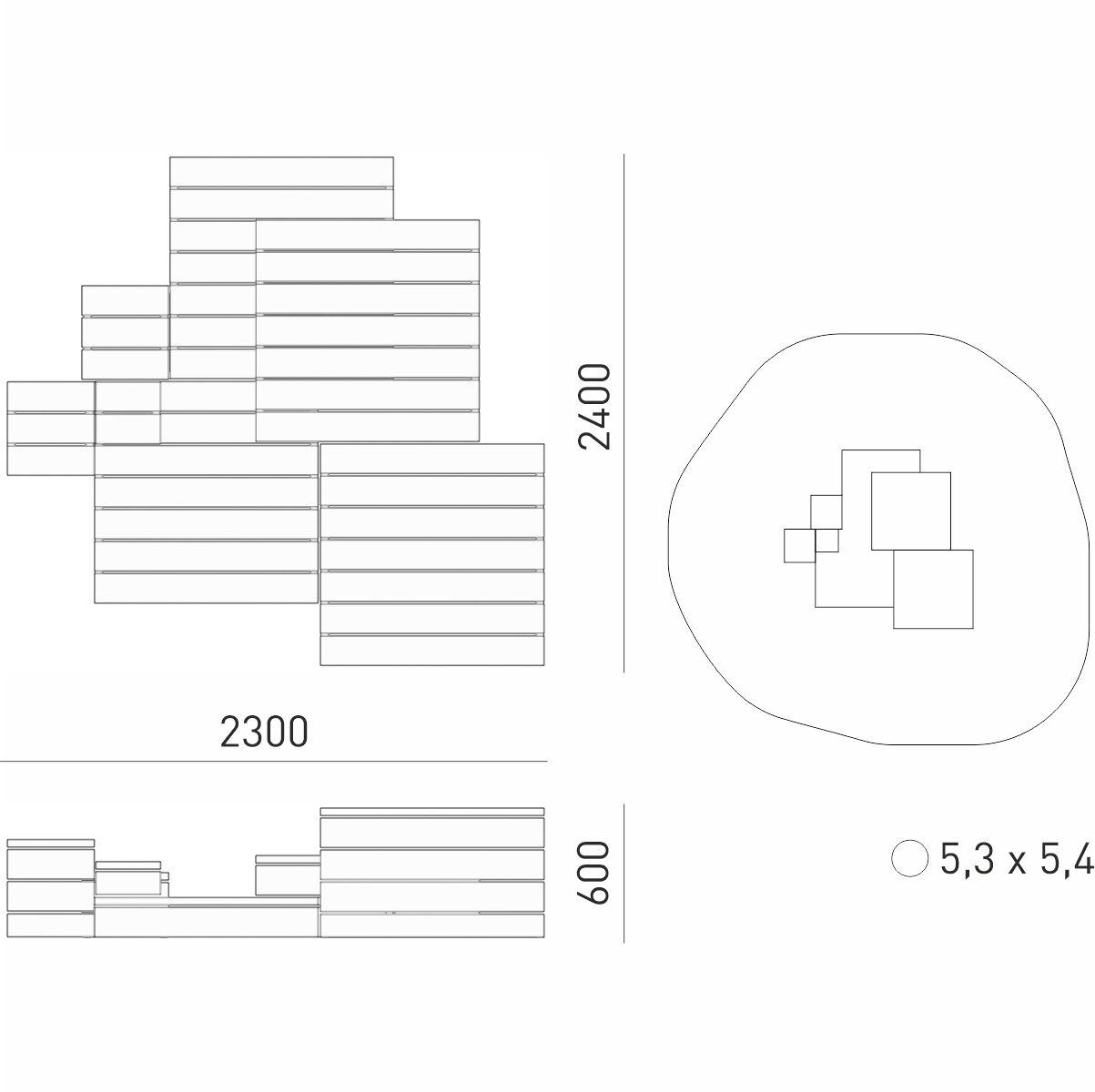 Габариты (М): 2,3 x 2,4 x 0,6