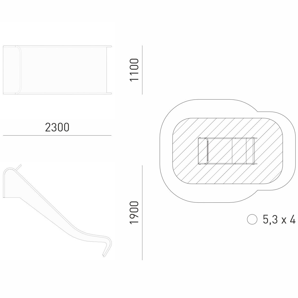 2,3 x 1,1 x 1,9