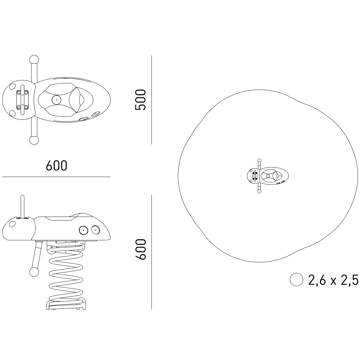Зона приземления (М): 2,6 x 2,5