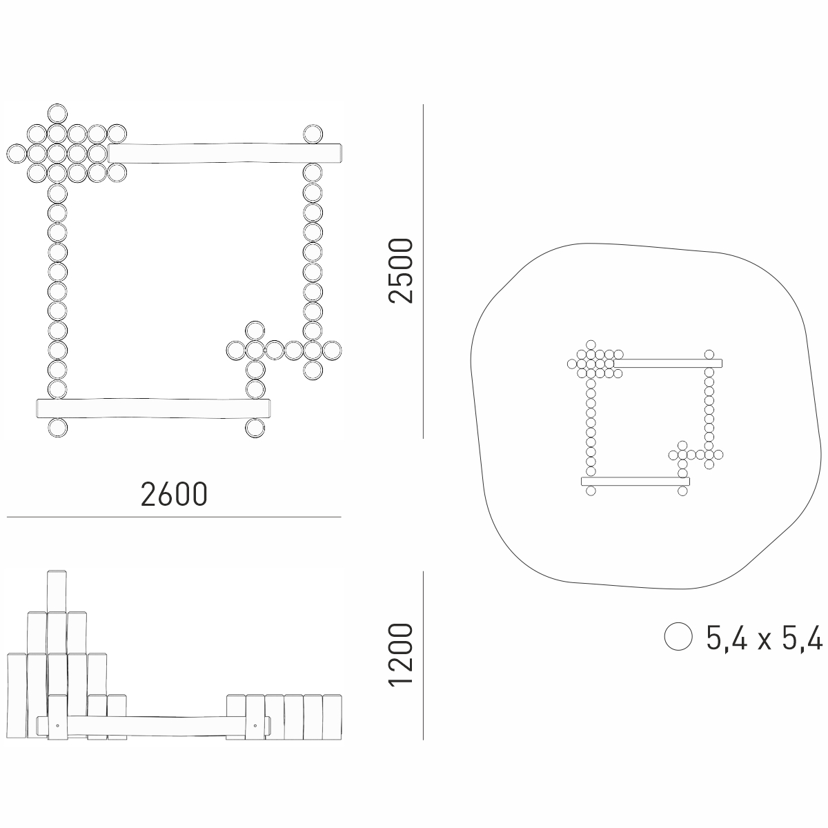 Габариты (М): 2,6 x 2,5 x 1,2