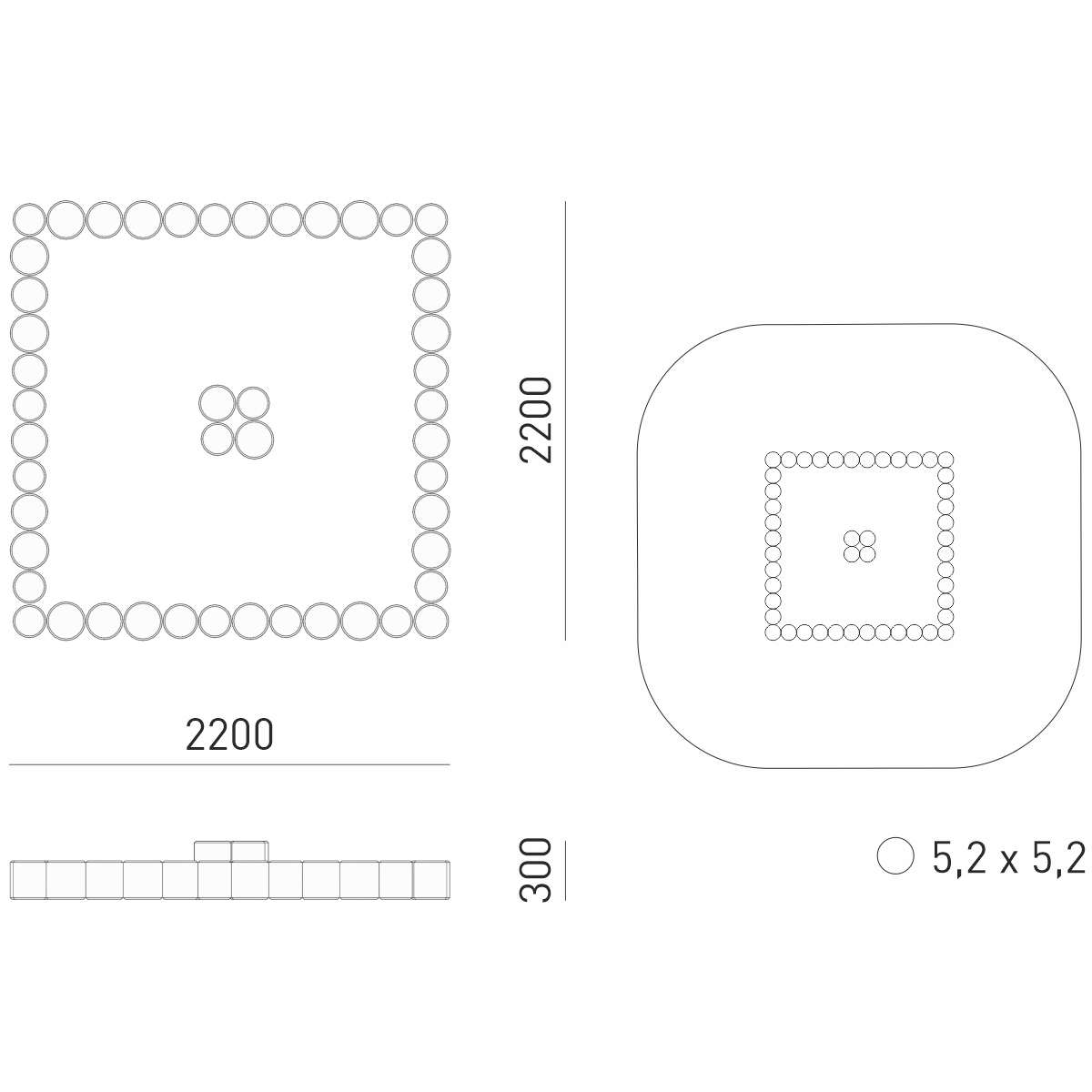 Габариты (М): 2,2 x 2,2 x 0,3
