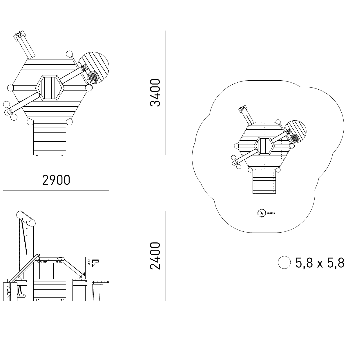Зона приземления (М): 5,8 x 5,8
