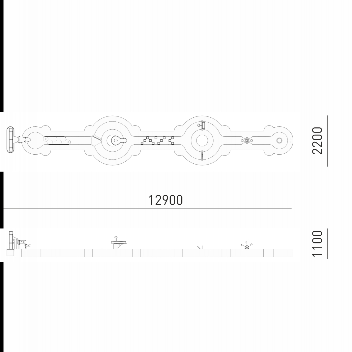 Габариты (М): 12,9 x 2,2 x 1,1