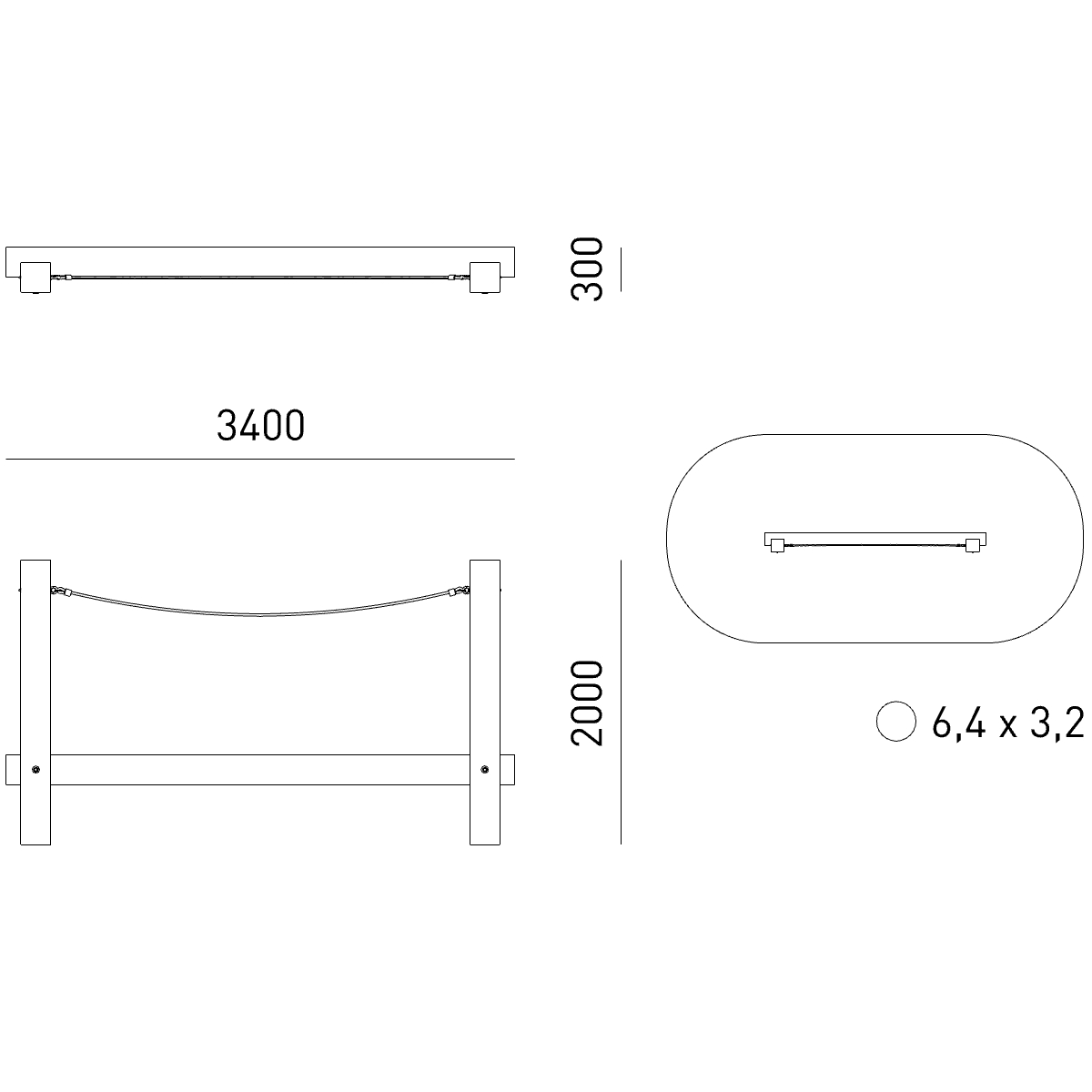 Габариты (М): 3,4 x 0,3 x 2