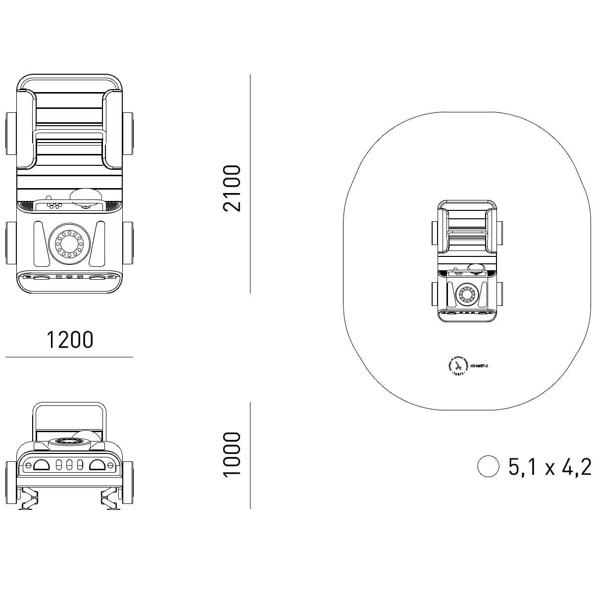 Габариты (М): 2,1 x 1,2 x 1