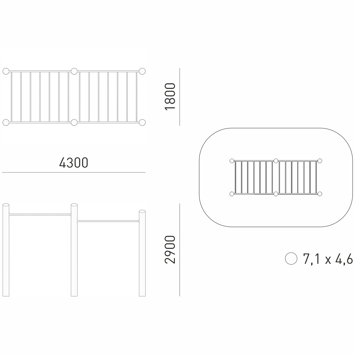 Габариты (М): 4,3 x 1,8 x 2,9