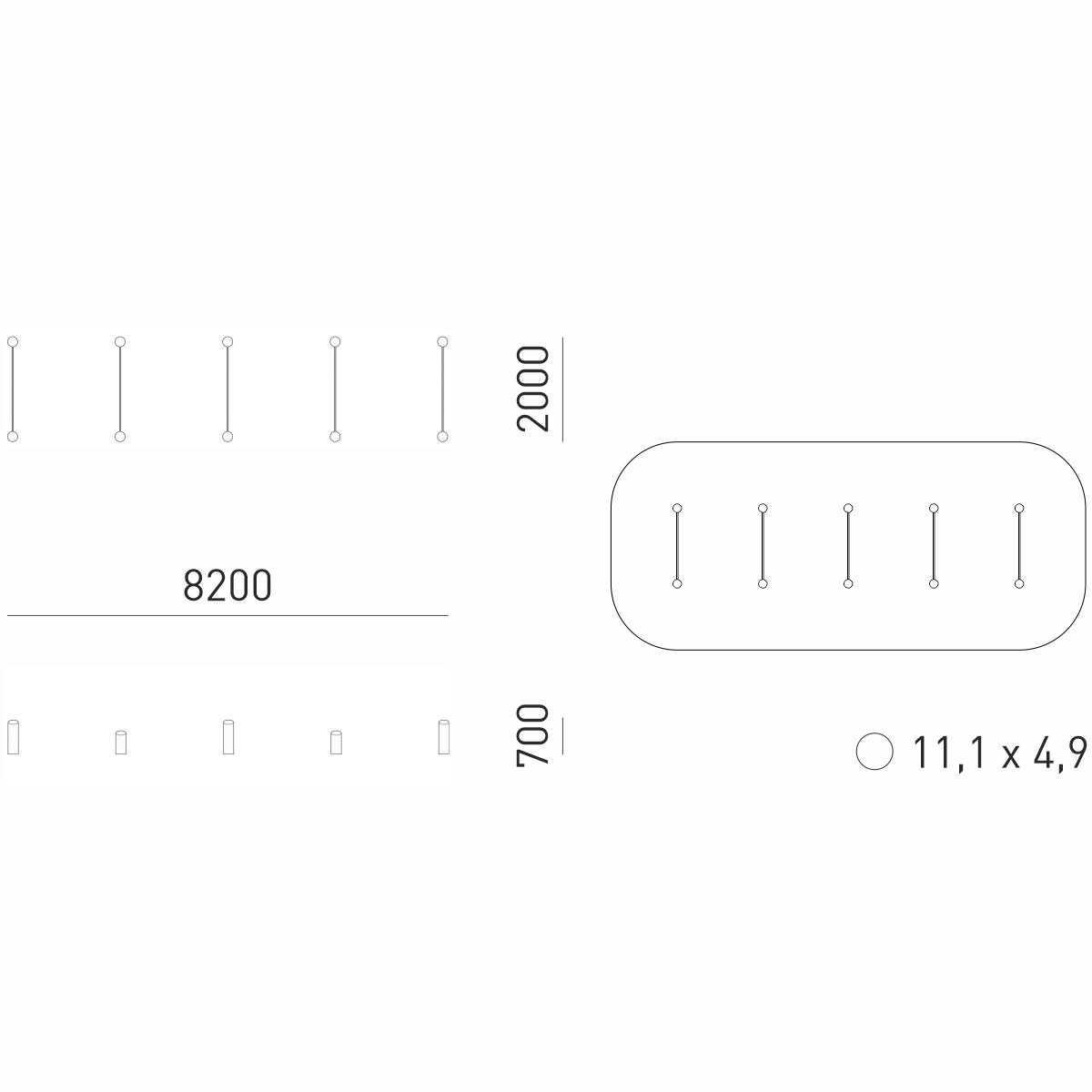 Габариты (М): 8,2 x 2 x 0,7