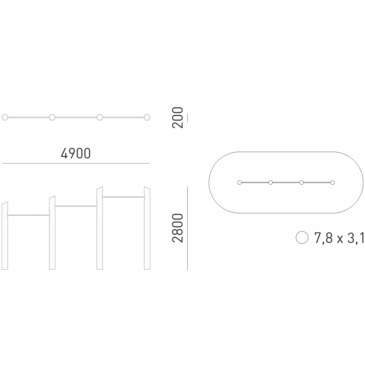 Габариты (М): 4,9 x 0,2 x 2,8