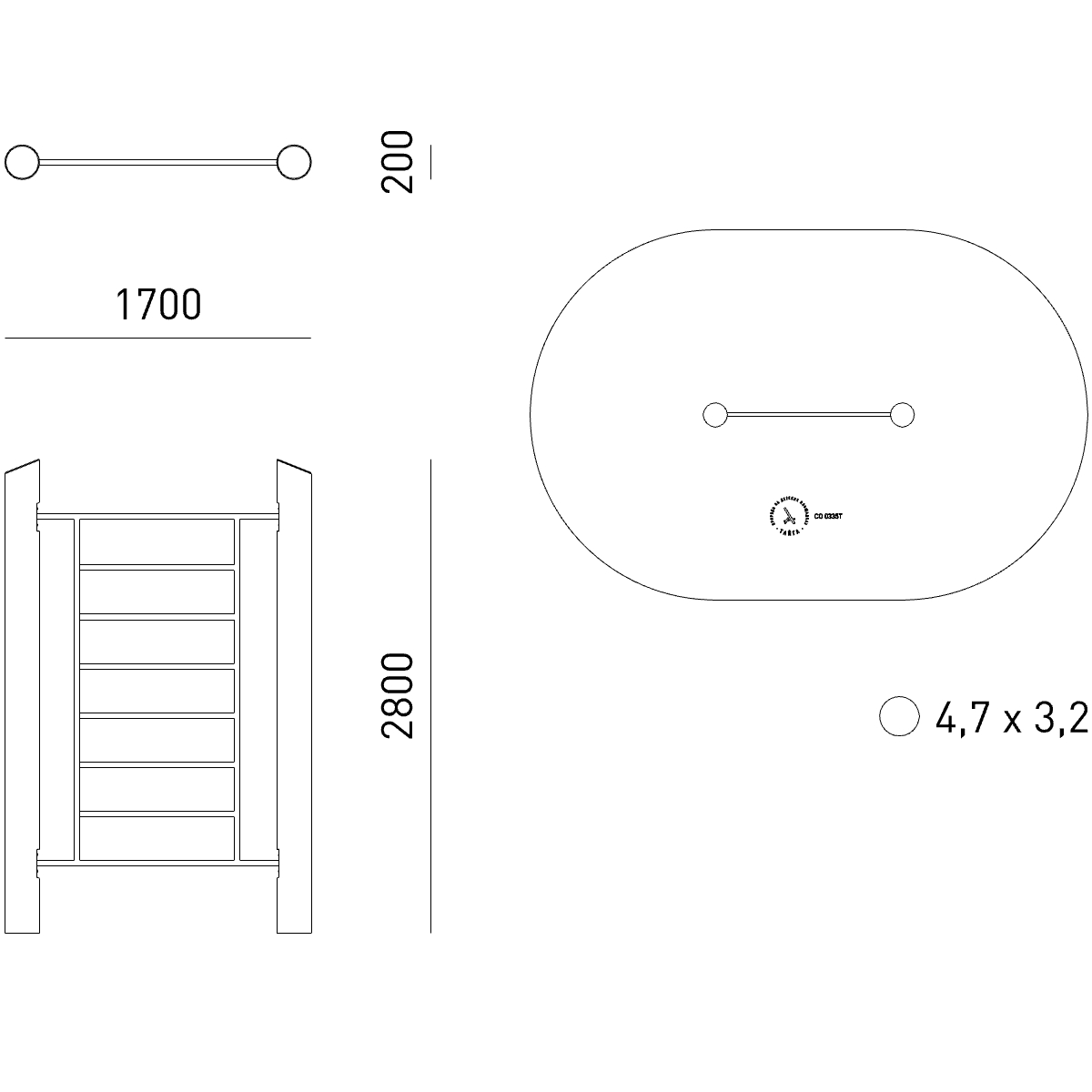 Габариты (М): 1,7 x 0,2 x 2,8