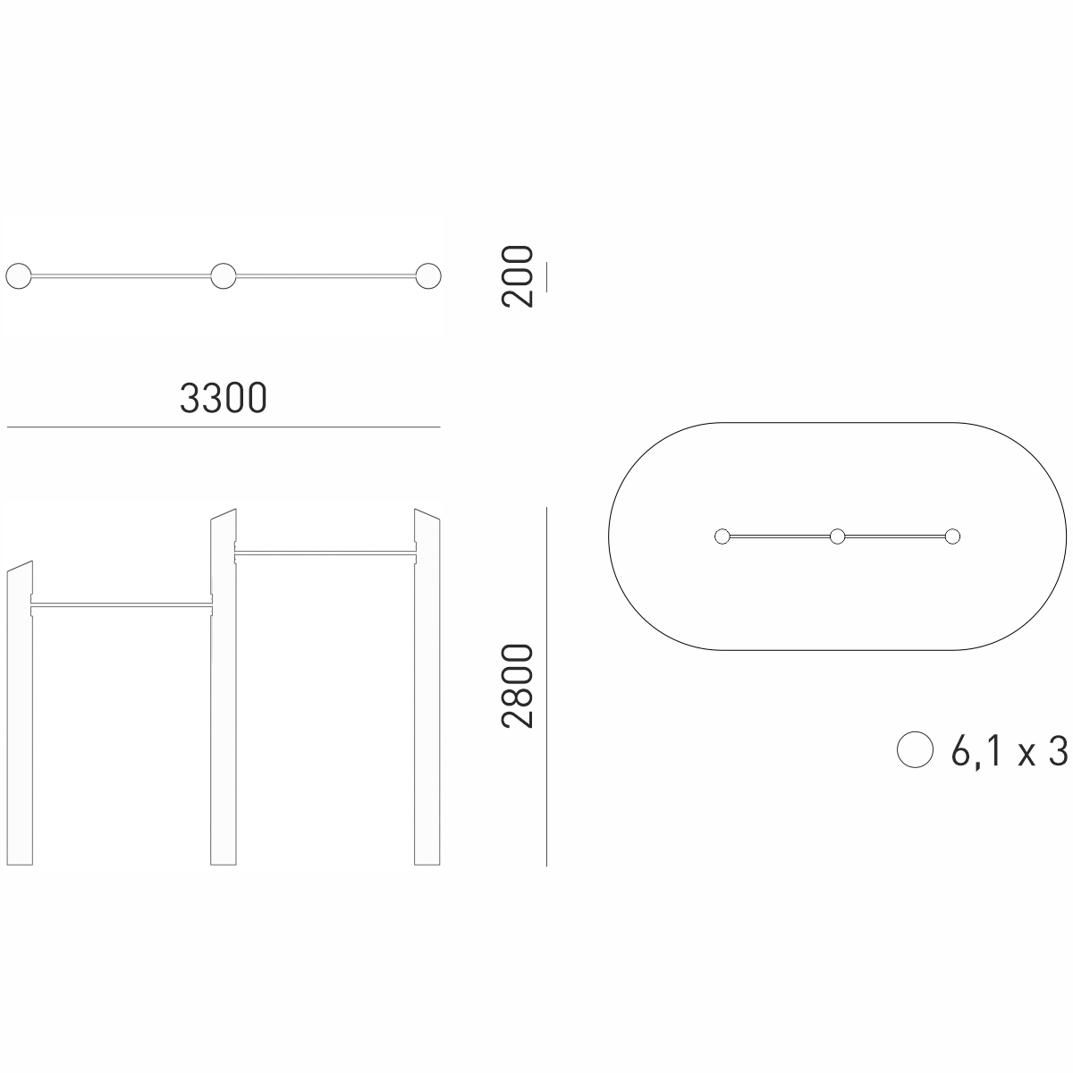Габариты (М): 3,3 x 0,2 x 2,8