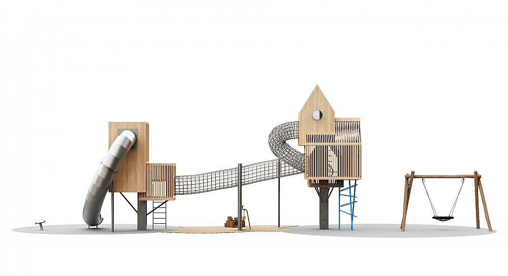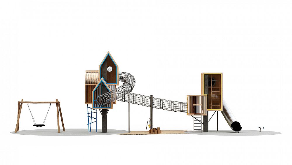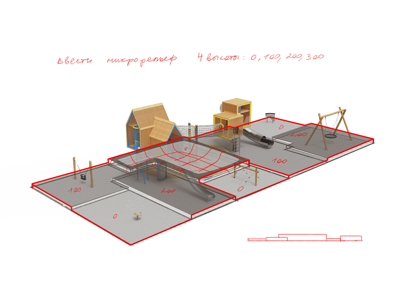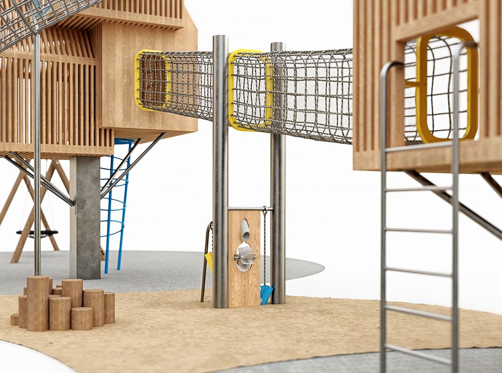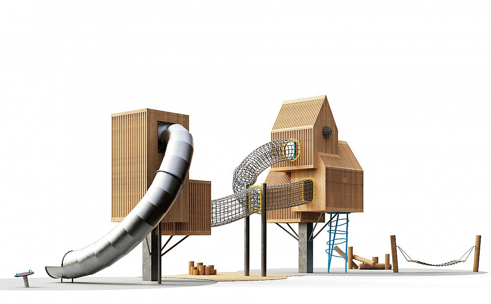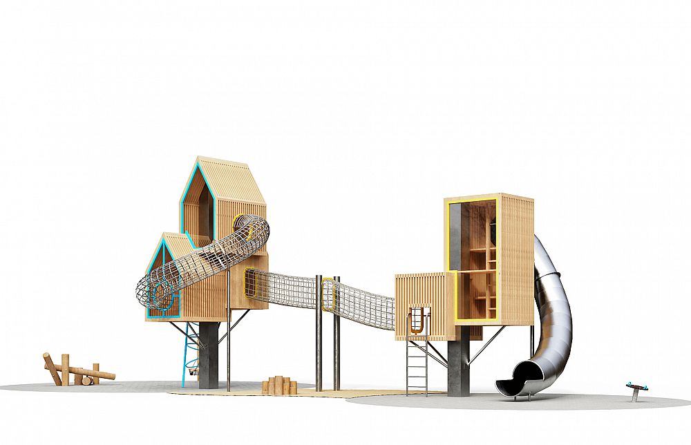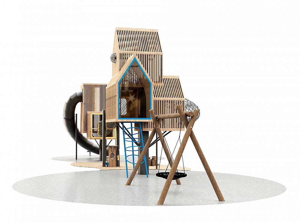 Проект PlayHouses разработанный для ЖК Первомайская 60, г. Екатеринбург. Когда на детскую площадку отводится не очень много квадратных метров можно применить приём наращивания конструкции вверх, чтобы раскрыть потенциал игрового поля. В данном случае перед нашей командой как раз стояла такая задача. Нужно было поднять игровой комплекс вверх и максимально задействовать нижнюю часть под игровое оборудование: качели, карусель, песочницу. Свободное пространство при этом так же должно присутствовать - слишком плотное расположение оборудования считается дурным тоном в дизайне игровых площадок. Плюс ко всему, нужно учитывать зоны безопасности и зоны приземления детского оборудования, но это уже из разряда "а разве можно их не учитывать?" - Без них никуда.