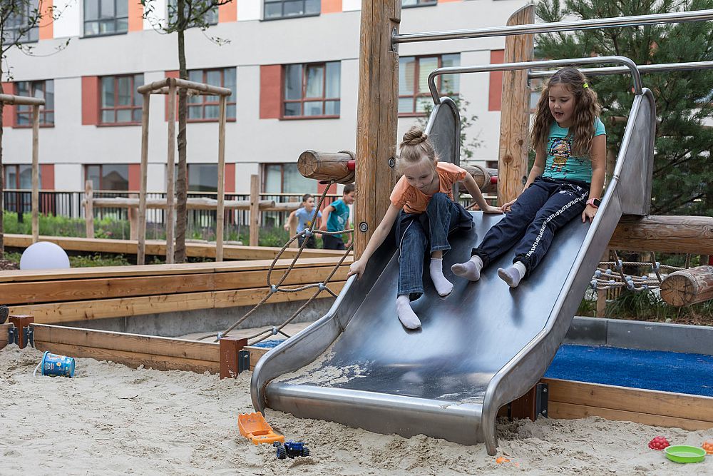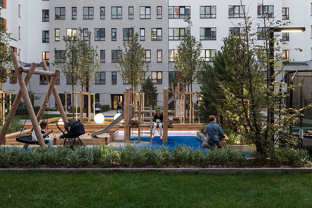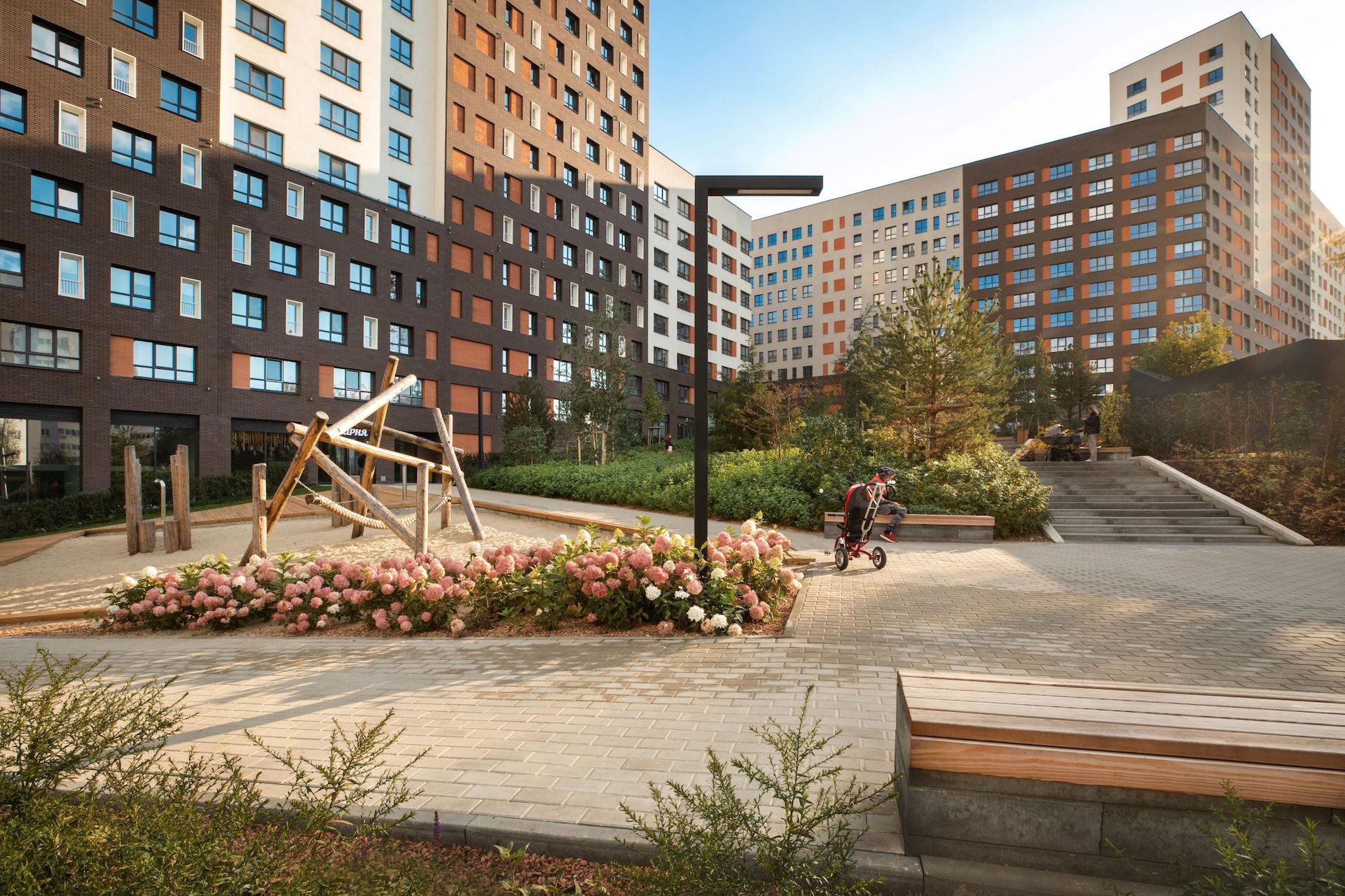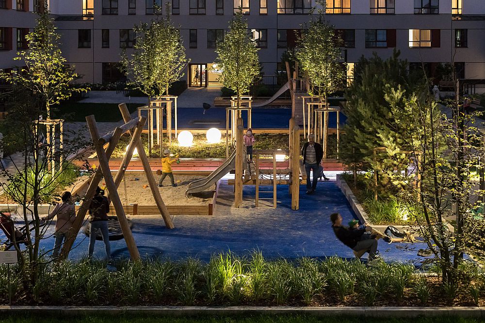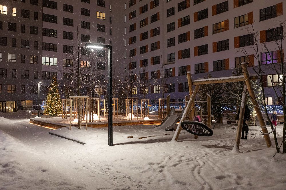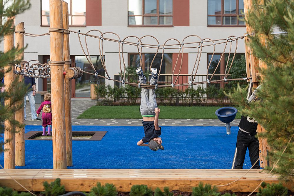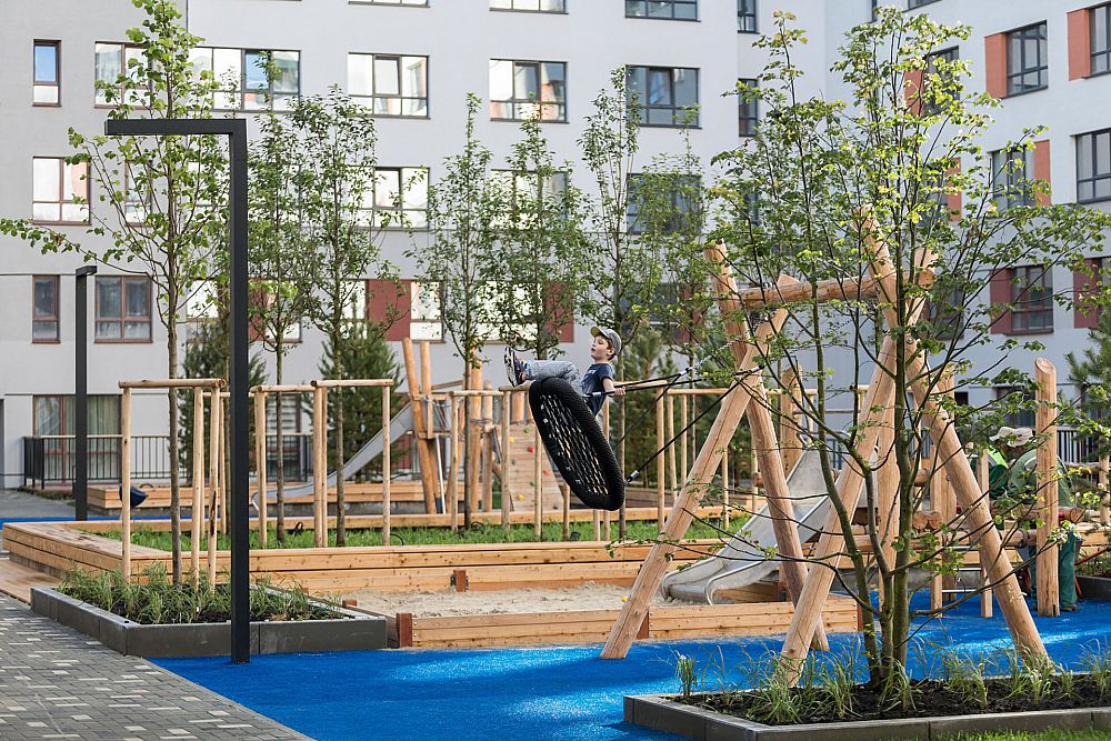 Компактный квартальный двор — один из нескольких данного жк. Осуществлен подбор оборудования для площадок. Во дворе использованы стандартные изделия линейки Тайга.